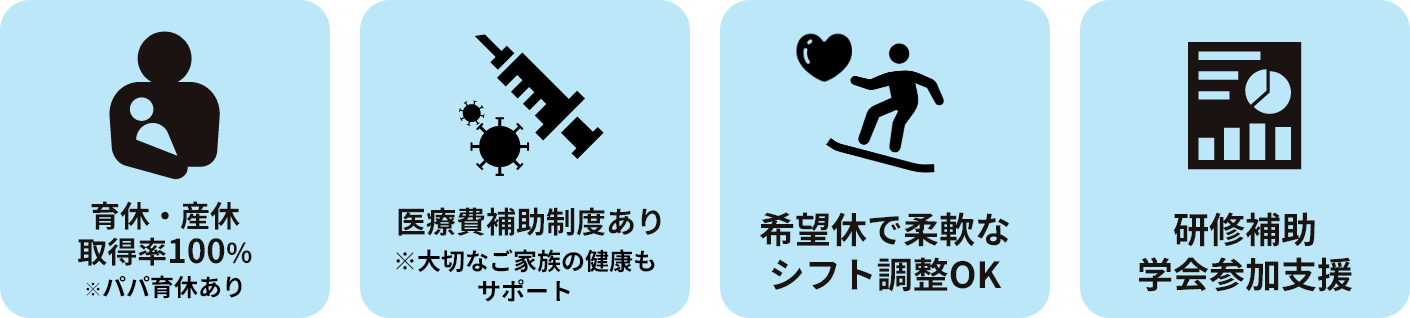 スタッフ一人ひとりの毎日と、これからの人生に寄り添いたいという、私たちの想いがつまったサポートたちです。